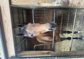 Pesce is a 5yo 16h OTTB who is a friendly boy, loves attention and a comfortable ride. Pesce has 3 even gaits with a natural head carriage. He has been started over poles and fences, he knows where his feet are and picks them up to go over fences. Pesce has been out around the farm and walks on the buckle. He is a sweet boy who runs to you when you come to get him from the pasture. He has a lot of potential and is very willing